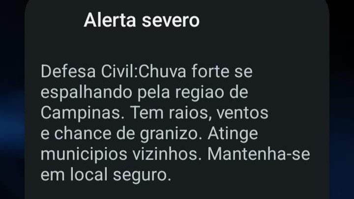 Na quinta-feira (15) e sexta-feira (16), a região de Campinas passa do estado de atenção para estado de alerta, com possibilidade de tempestades mais intensas, raios frequentes, ventos fortes e granizo. Com o solo já encharcado, aumenta o risco de alagamentos, deslizamentos e outros transtornos, especialmente em áreas mais vulneráveis.