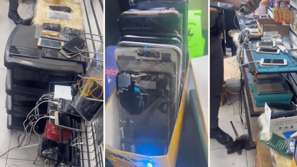 Além dos celulares, os agentes apreenderam sete tablets e cinco dispositivos com restrição no código de identificação internacional, o IMEI — fator que indica possível adulteração ou irregularidade no registro do aparelho.