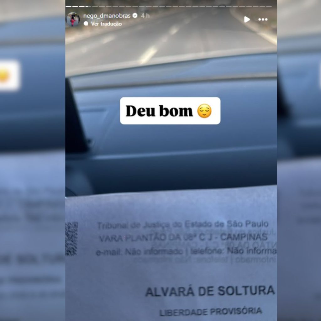 Nas redes sociais, o influenciador se pronunciou nos stories, publicando uma foto do alvará de soltura, concedida em liberdade provisória. Ainda nos stories o influencer comentou “negro não tem um dia de paz”, e falou um pouco do motivo da prisão: