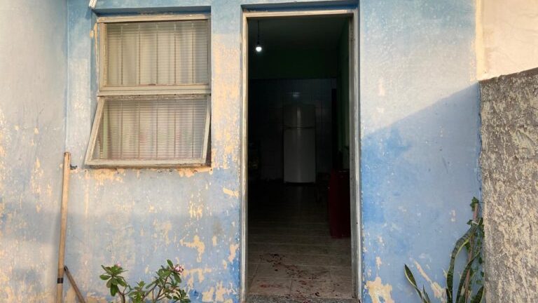 Os policiais, acompanhados do vizinho, foram até a residência da vítima, onde constataram que o imóvel estava aberto. No interior, foram encontradas diversas manchas de sangue, especialmente na cozinha e no quintal. Nenhuma pessoa foi localizada na casa, tampouco documentos de identificação.