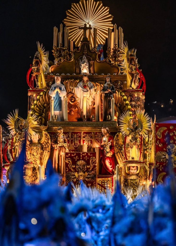A Beija-Flor apresentou o enredo sobre o Bembé do Mercado, tradicional manifestação religiosa de Santo Amaro de Purificação, na Bahia. Com assinatura do carnavalesco João Vitor Araújo, a escola trouxe referências ao candomblé de rua e encantou com alegorias que representaram Oxum e Iemanjá. A comissão de frente surpreendeu ao transformar um barco em Mãe D’água.