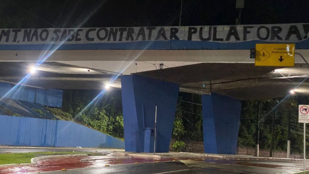 “MT, já pagou o transferban?”, questionavam os torcedores.
