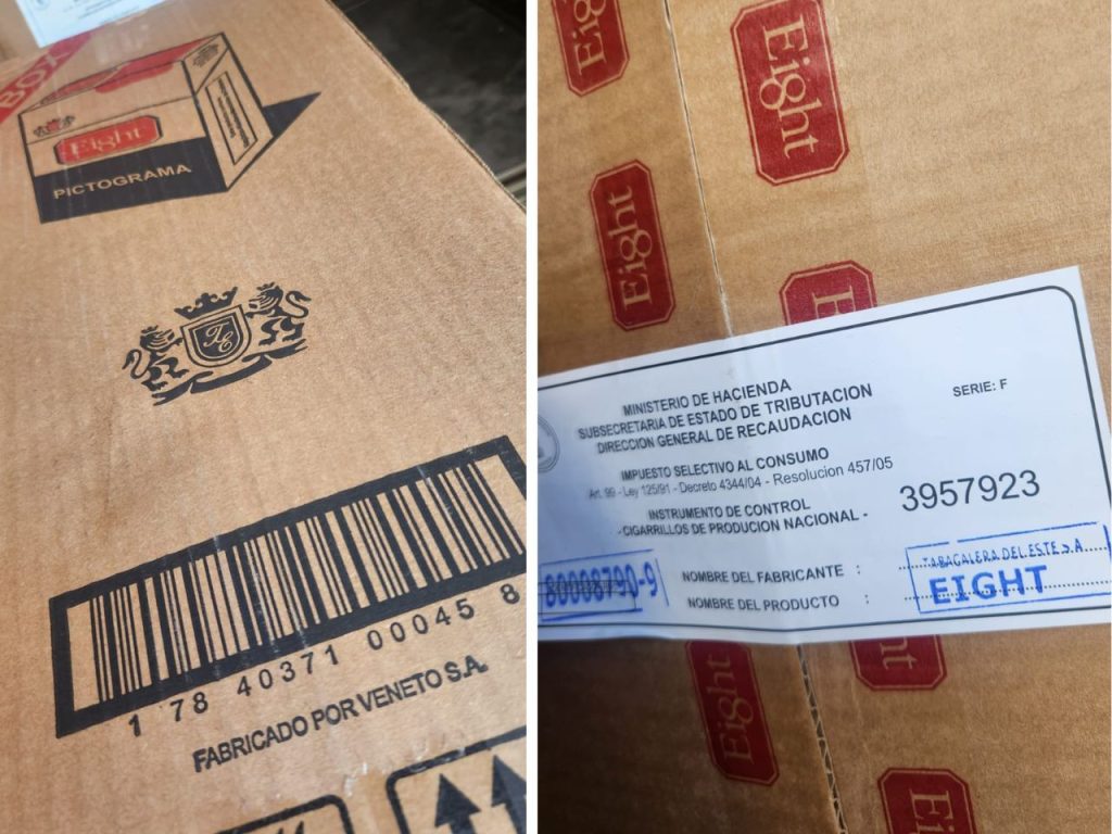 Dentro do veículo, os policiais localizaram caixas com as marcas “Eight” e “Topic”, cujos produtos originais têm fabricação paraguaia e comercialização proibida no Brasil. Divergências nas embalagens permitiram, em juízo preliminar, inferir a inautenticidade da mercadoria.