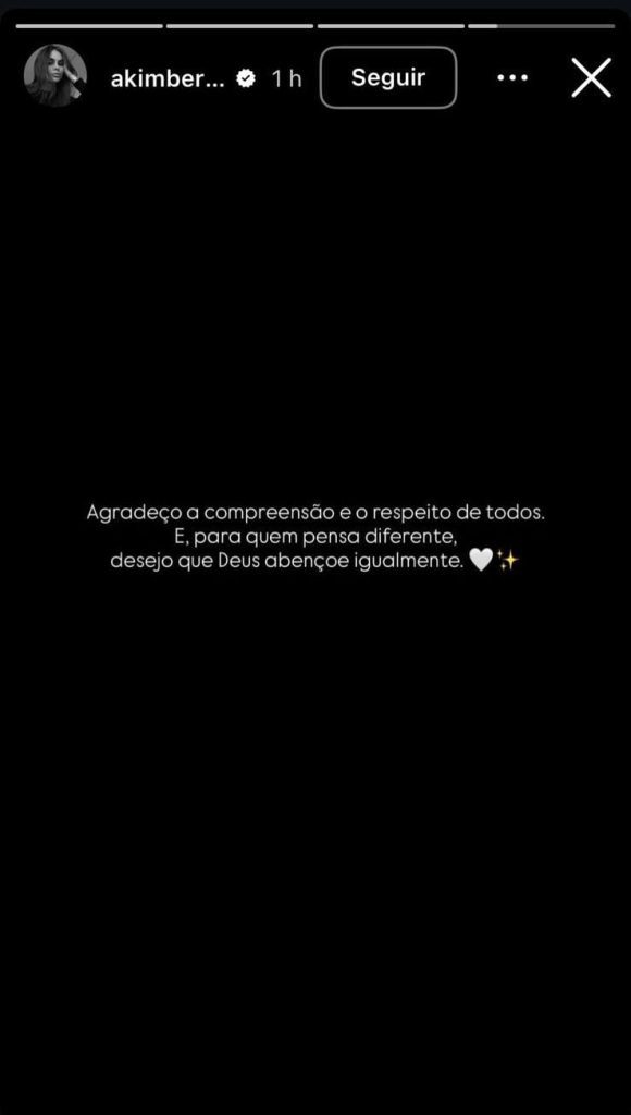 “Agradeço a compreensão e o respeito de todos. E, para quem pensa diferente, desejo que Deus abençoe igualmente”, escreveu Amanda encerrando o pronunciamento.
