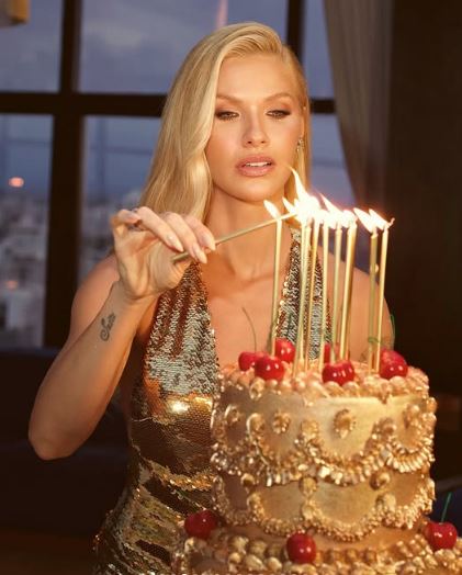 Na noite que antecedia a data oficial do seu aniversário, Andressa comemorou ao lado de amigas uma festa chiquérrima e intimista, e usou um lindo vestido dourado, que combinou com seu bolo vintage.