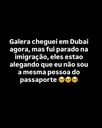 Logo depois, o humorista mostrou uma imagem no aeroporto, onde aparentemente estava aguardando. Inclusive, Rico Melquiades ainda exibiu a conversa com um amigo, que ofereceu a ajuda de um patrocinador árabe que poderia intervir para resolver a situação após o pedido de ajuda.