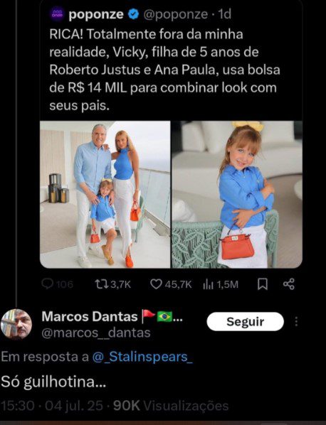 Um internauta escreveu primeiramente que era totalmente fora da realidade dele ter uma bolsa de griffe avaliada naquele valor, e foi aí que o condenado escreveu o seguinte: “somente uma guilhotina resolveria isso”.