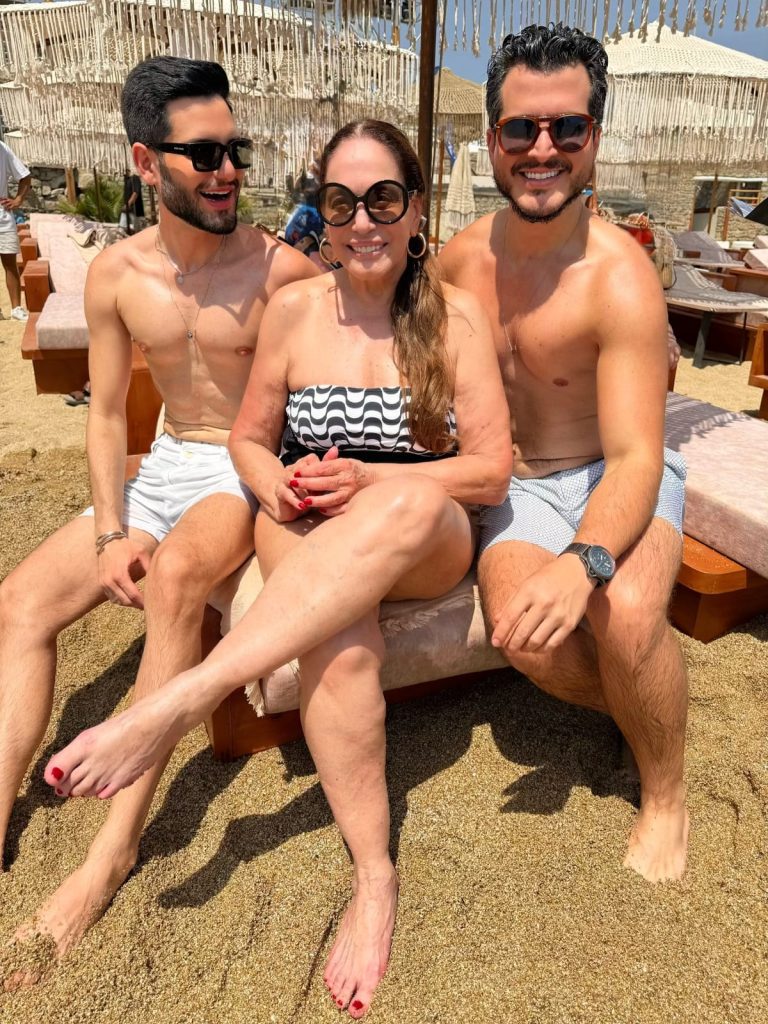 Susana Vieira fez aniversário! A atriz, que coleciona brilhantes papéis na TV e no cinema, brindou 83 anos em uma viagem especial para Mykonos, na Grécia. Para abrilhantar ainda mais a comemoração, ela está com seu filho, nora e amigos, curtindo momentos mais que especiais. Com o pé na areia, ela posou ao lado dos amigos, os doutores. Binho Alencar, seu dentista, e Victor Bechara, seu dermatologista,